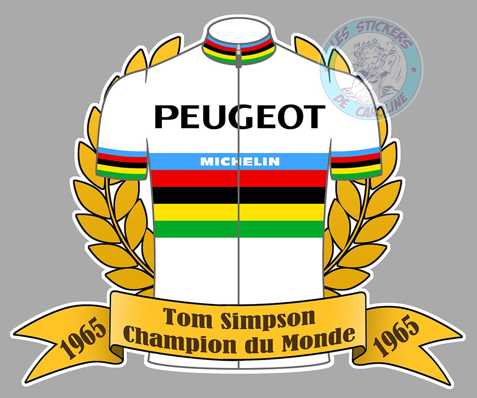 STICKER TOM SIMPSON GRANDE BOUCLE TOUR DE FRANCE CHAMPION DU MONDE VAINQUEUR 1965 VELO PEUGEOT MICHELIN SC102
