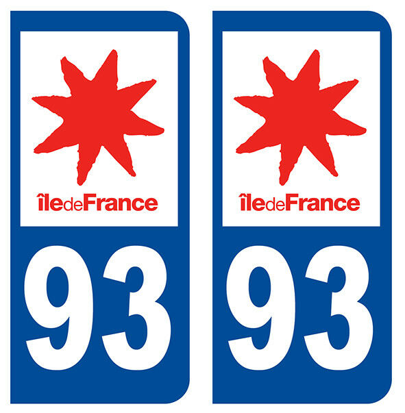 2 IMMATRICULATION 93 SEINE SAINT DENIS REGION PARISIENNE STICKER AUTOCOLLANT