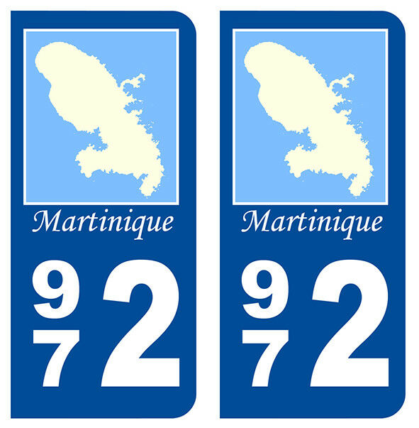 2 IMMATRICULATION 972 MARTINIQUE DEPARTEMENT AUTOCOLLANT STICKER