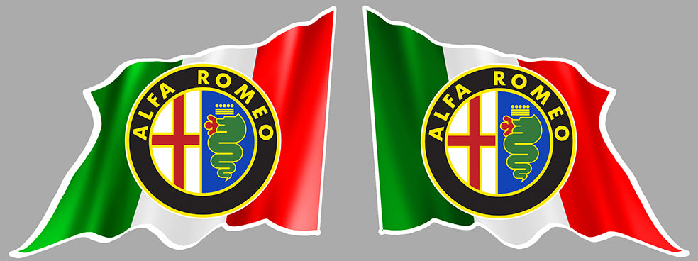 2 STICKERS LOGO ALFA ROMEO MILANO DRAPEAU ITALIEN AUTOCOLLANT AUTO AA042